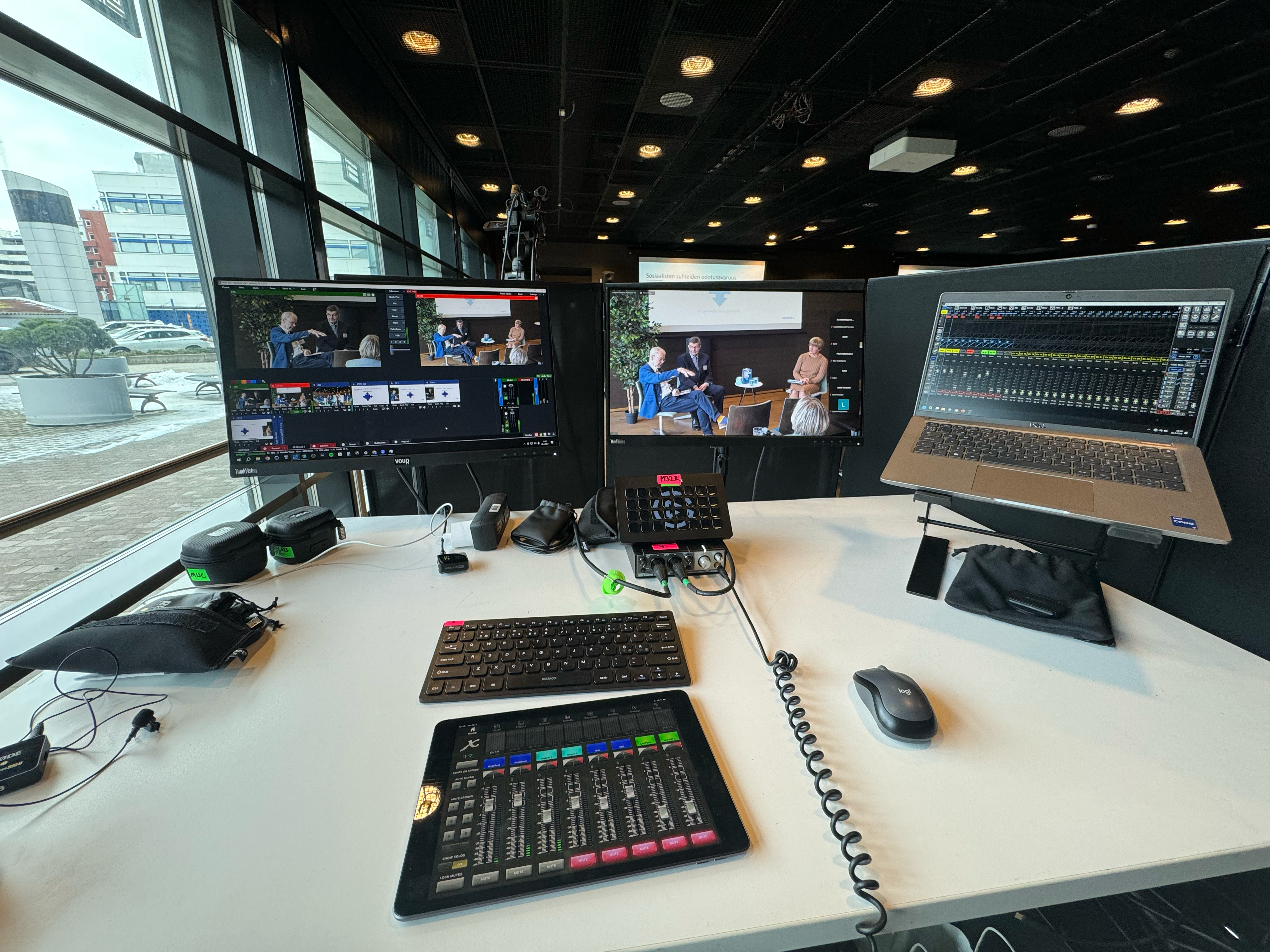 4. Muista kertoa kaikista erikoistoiveista hyvissä ajoin. Etäpuhujat, mikrofonit ja äänentoisto, tukinäytöt ja kaikki muut lisäpalvelut onnistuvat varmasti teknisen kumppanin kautta. Esimerkiksi valaistuksen tarve ei välttämättä tule aina mieleen, mutta monesti neukkarin tai toimiston kattovalot eivät näytä kamerassa kovin hyvältä. Kysy lisävalaistuksen tarpeesta striimaajaltasi.